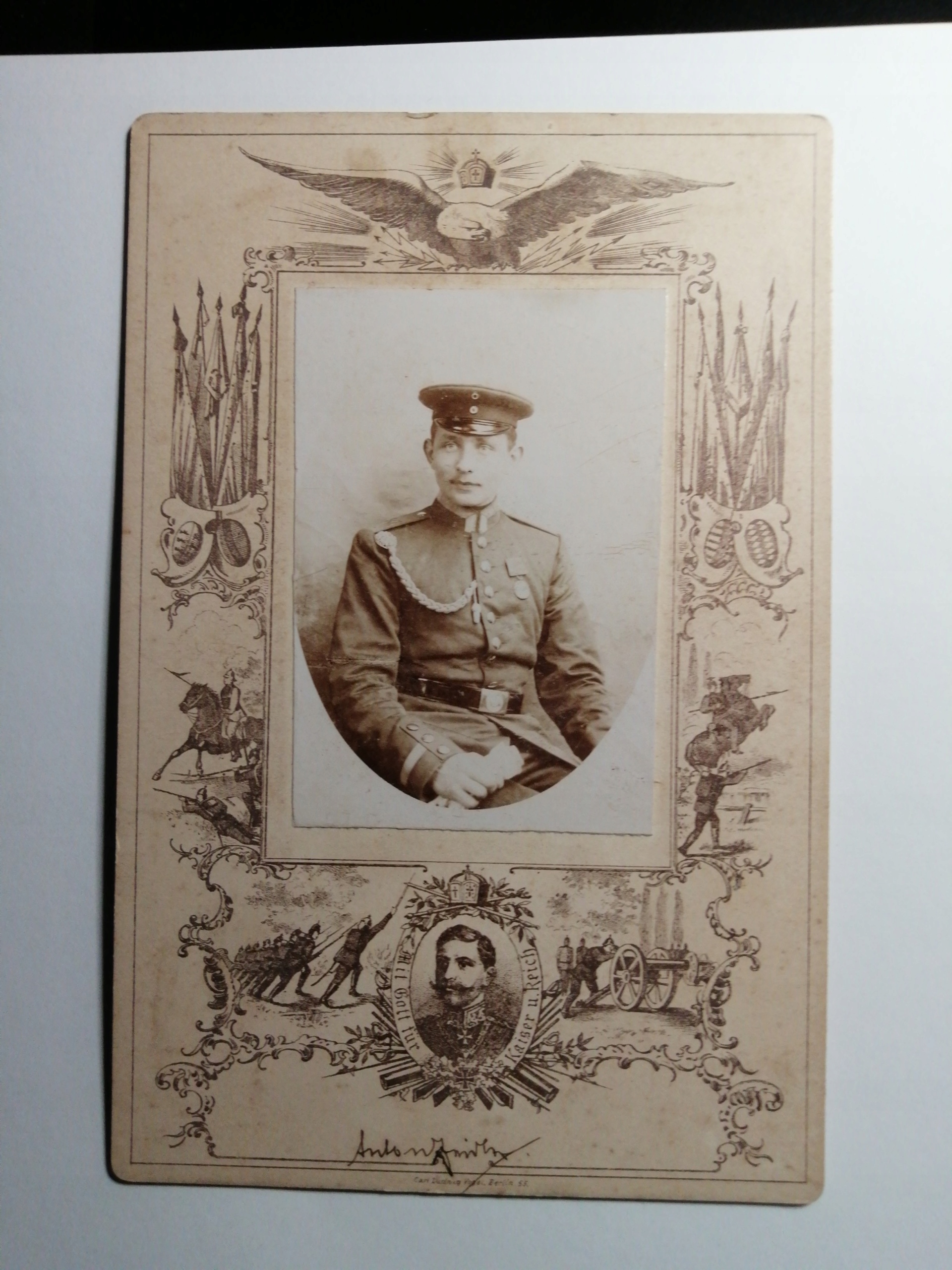 КАРТОН - ПОРТРЕТ ОФИЦЕРА - 1890 Г. - С БОГОМ ДЛЯ ИМПЕРАТОРА РЕЙХА