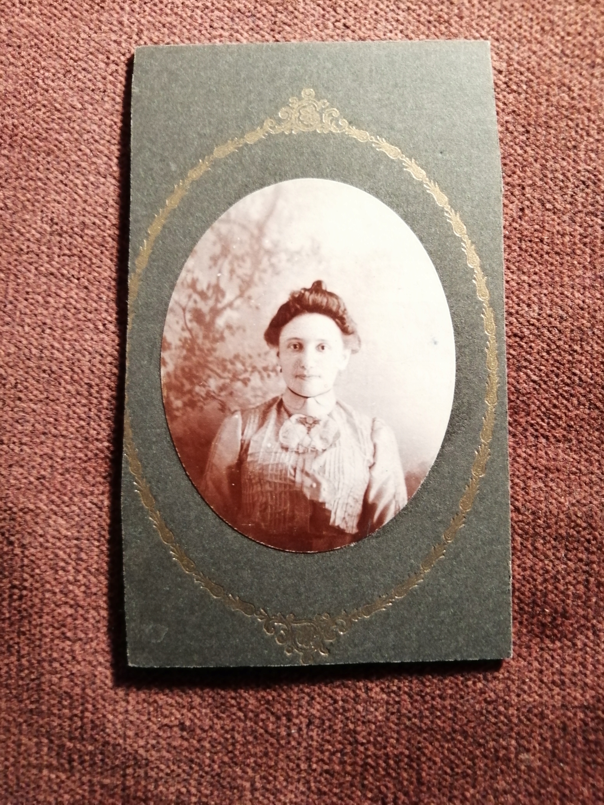 KARTON 1900- PORTRET ARYSTOKRATKI - UBIÓR - ZŁOCONY MEDALION ZDJĘCIA