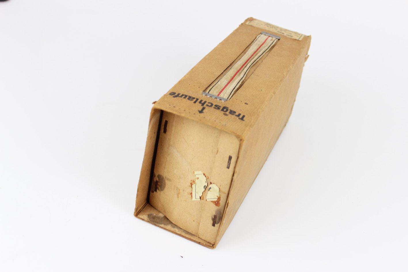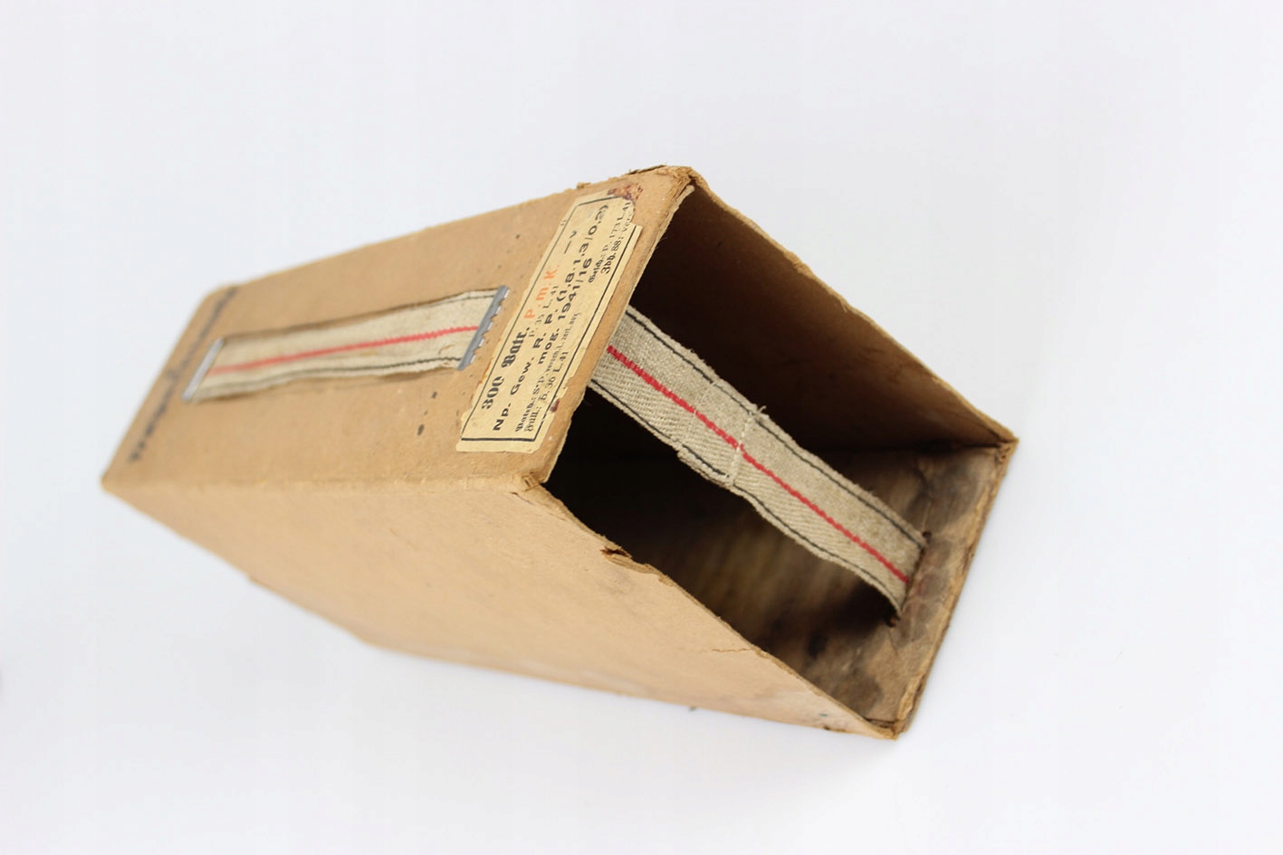 Оригинальная редкая картонная коробка из 300 кусков 7,92x57 мм против боеприпасов Mauser, типа P.M.K (со стальным ядром), произведенным из компонентов различных поставщиков в 1941 году. Согласно информации из сохранившегося наклеек, боеприпасы были изготовлены из закослитых стальных шкал с миссиями P. 173 (оболочка со стальным ядра). Ручка природы «Эрсаца» прекрасно выжила на фотографиях.