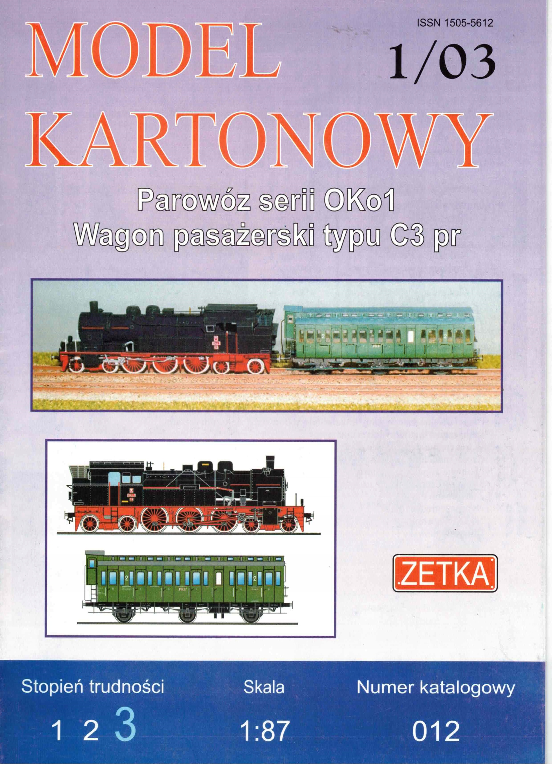 КАРТОННА МОДЕЛЬ 1/03 Паровоз OKo1 та пасажирський вагон С3 пр 1:87
