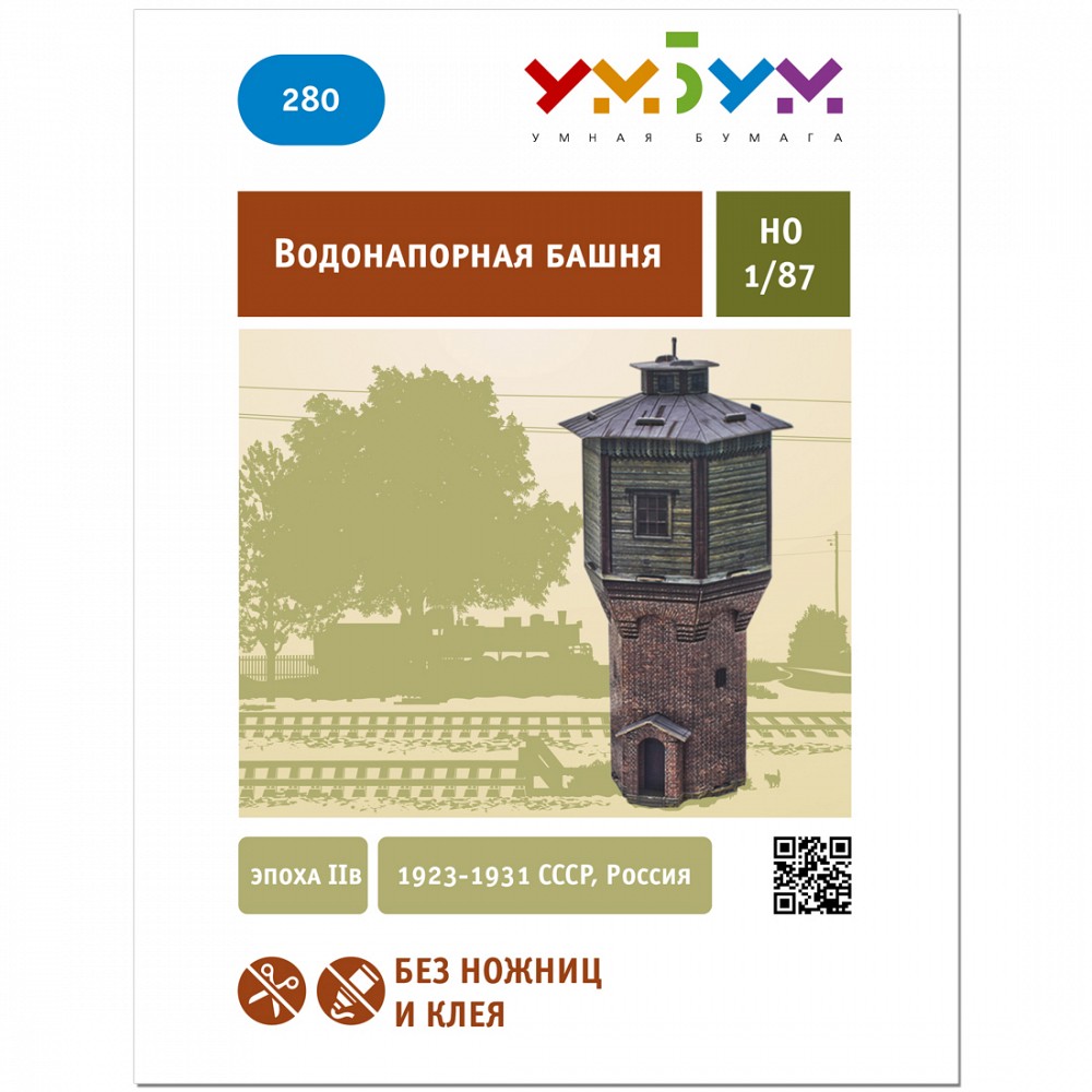 Водонапорная башня располагалась рядом с путями, что позволяло паровоз для быстрой заправки водой. Модель башни изготовлена из прочного двустороннего картона толщиной 1 мм, что придает ей исключительную прочность и реалистичный вид. Трехмерная фактура внешней поверхности придает модели эффектный вид и придает железнодорожному пейзажу аутентичный характер.