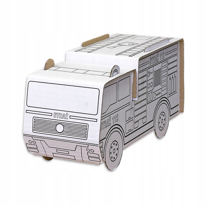 Картонная машина полностью сделана из картона. Доступен в версии с принтом для раскрашивания. Для изготовления всегда используется пятислойный картон (белый и коричневый).