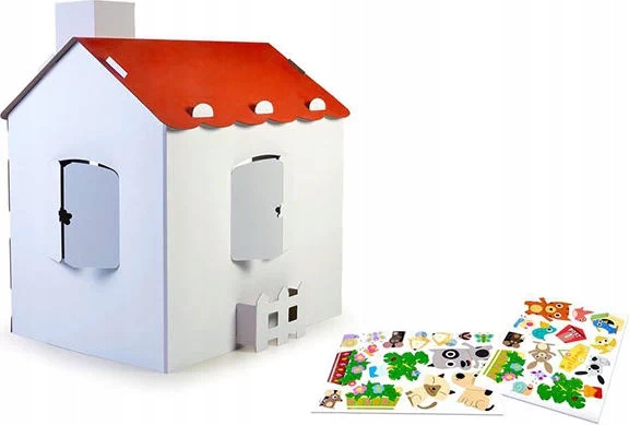 Домик сделан из прочного картона, еще не до конца готов. Ваши родители или старшие братья и сестры помогут вам собрать ее, но сначала вам нужно ее украсить. В комплекте с домиком идут красочные наклейки различной тематики, которые можно использовать для этой цели. Однако ничто не мешает ребенку украсить дом своими рисунками. Возьмите с собой краски, маркеры и мелки! Игрушка позволяет ребенку свободно развивать творческие способности, ручные навыки и умение сотрудничать с родителями, братьями, сестрами или друзьями.