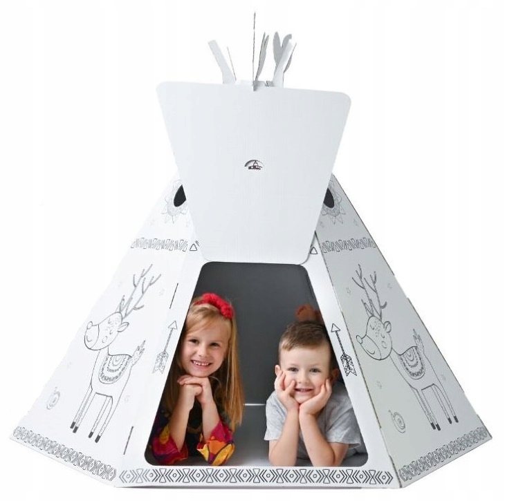 DIY Картонная палатка для складывания и окрашивания для детей - творческое развлечение в индейцах и кемпинге! Кемпинг или развлечься в индейке! Палатка в картон Tipi - отличная идея для развлечения как дома, так и на улице в саду. Сделано из прочной 5-х слойной гофрированной платы, обеспечивает долговечность и радость веселья