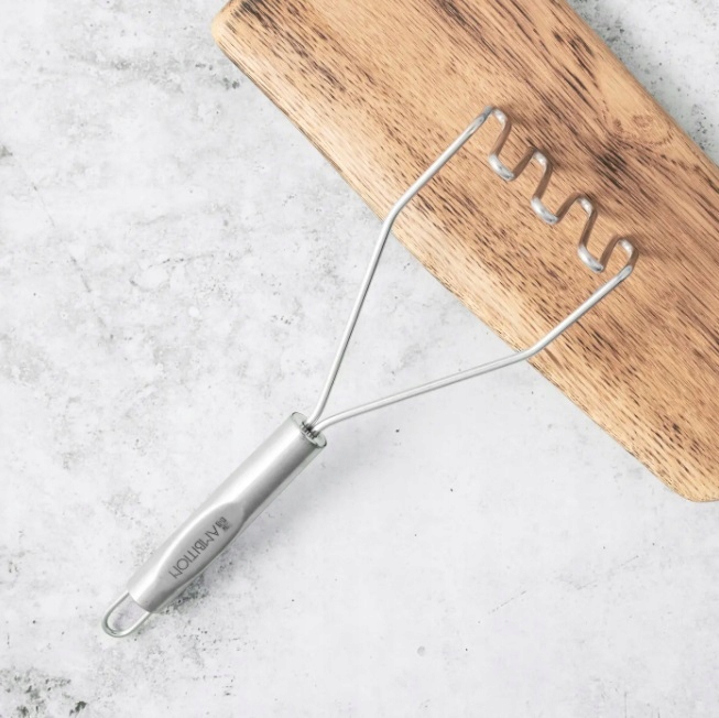 Пестик изготовлен из нержавеющей стали и имеет подвесную ручку. Удобен в использовании и практичен на любой кухне.