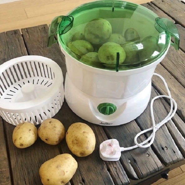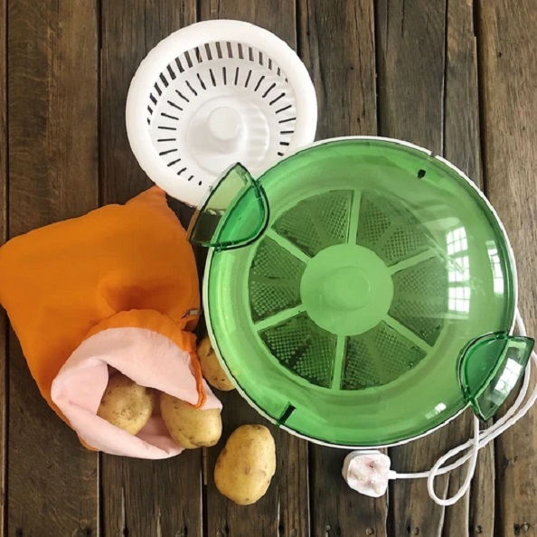 ЭЛЕКТРИЧЕСКАЯ КАРТОФЕОЧИСТКА — этот мощный кухонный гаджет представляет собой автоматическую овощечистку. Картофельная машина, которая может приготовить идеально очищенный картофель менее чем за четыре минуты! ВМЕСТИМОСТЬ БАРАБАНА до 1 КГ. Барабан большой емкости позволяет очищать большие партии картофеля за один раз. Подходит для всех видов картофеля. ТЕХНОЛОГИЯ ВРАЩАЮЩЕГОСЯ ДИСКА. Вращающийся стальной диск эффективно удаляет кожуру с картофеля и удаляет любую грязь. ЛЕГКО ЧИСТИТЬ: элементы можно быстро и легко разобрать для очистки после использования. МНОГОКРАТНОЕ ИСПОЛЬЗОВАНИЕ. Эту электрическую картофелечистку также можно использовать в качестве овощечистки для яблок или в качестве вращателя для салата.