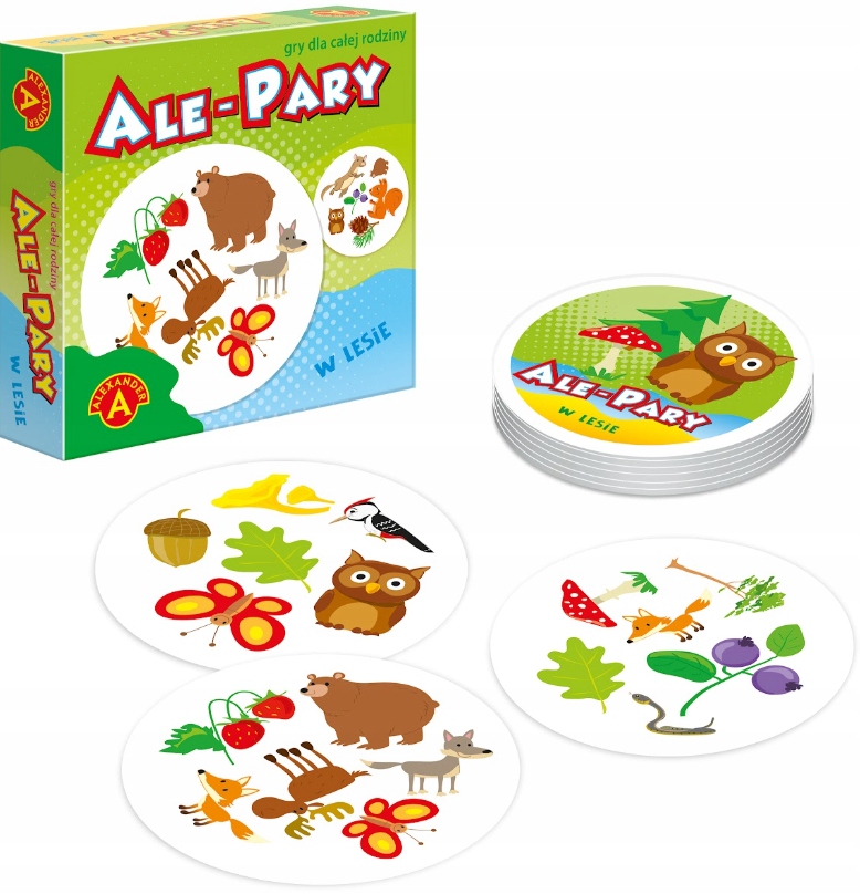 Ale Pairs — In the Forest — это быстрая и простая карточная игра, в которой победителем становится тот, кто проявит наибольшую проницательность. В комплект входит 31 карточка с 6 картинками, изображающими растения и животных, которых мы можем встретить в лесу. Любые две карточки всегда имеют одну общую картинку, но для удобства эти картинки часто имеют разные размеры. Цель игры – как можно быстрее найти общую картинку. В зависимости от варианта победителем становится тот, кто соберет больше всего карточек или избавится от них всех как можно быстрее.