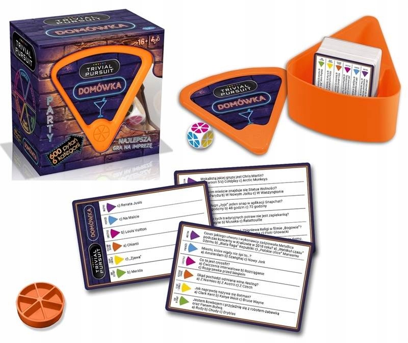 TRIVIAL PURSUIT: Домашняя вечеринка — лучший способ начать любую вечеринку! Проверьте свои знания в уникальной викторине TRIVIAL PURSUIT. Домашняя игра содержит целых 600 сумасшедших вопросов в таких категориях, как: Путешествия, Фильмы и сериалы, Музыка, Образ жизни, Мировая кухня и Кто я? Узнайте, какой игрок будет знатоком мировой кухни, знатоком кинематографии и знающим все песни. Кто из вас ответит на большее количество вопросов, отмеченных на кубике?