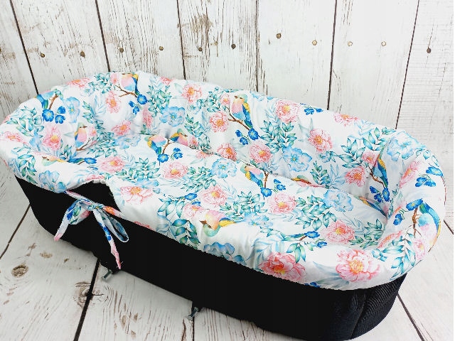 - Универсальный вкладыш, подходит для большинства колясок, изготовлен из сертифицированных тканей, мягкий, теплый и приятный на ощупь. Клапан имеет вшитый резиновый шнурок, который позволяет регулировать его по окружности гондолы. Однако при выборе пеленки необходимо учитывать, что вставка может не подходить к коляскам с коляской на молнии, поскольку наша вставка выкатывается наружу и ей требуется около 2 см, чтобы зацепиться за чашу/гондолу. Кроме того, для регулировки длины используются вшитые ремни, которые можно завязать бантиками, и наша гондола выглядит очень особенной и уникальной.