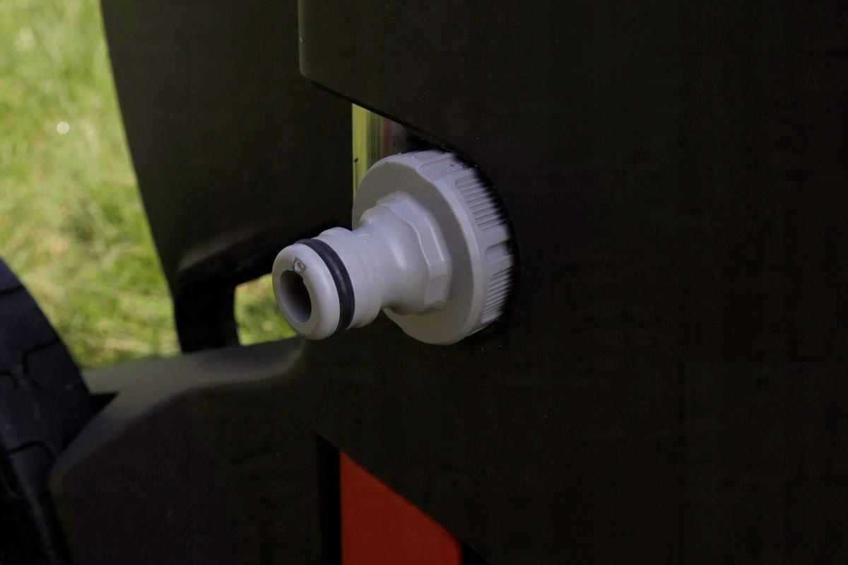 Кроме того, тележка оснащена встроенным замком, который предотвращает утечку воды после полива или во время транспортировки.