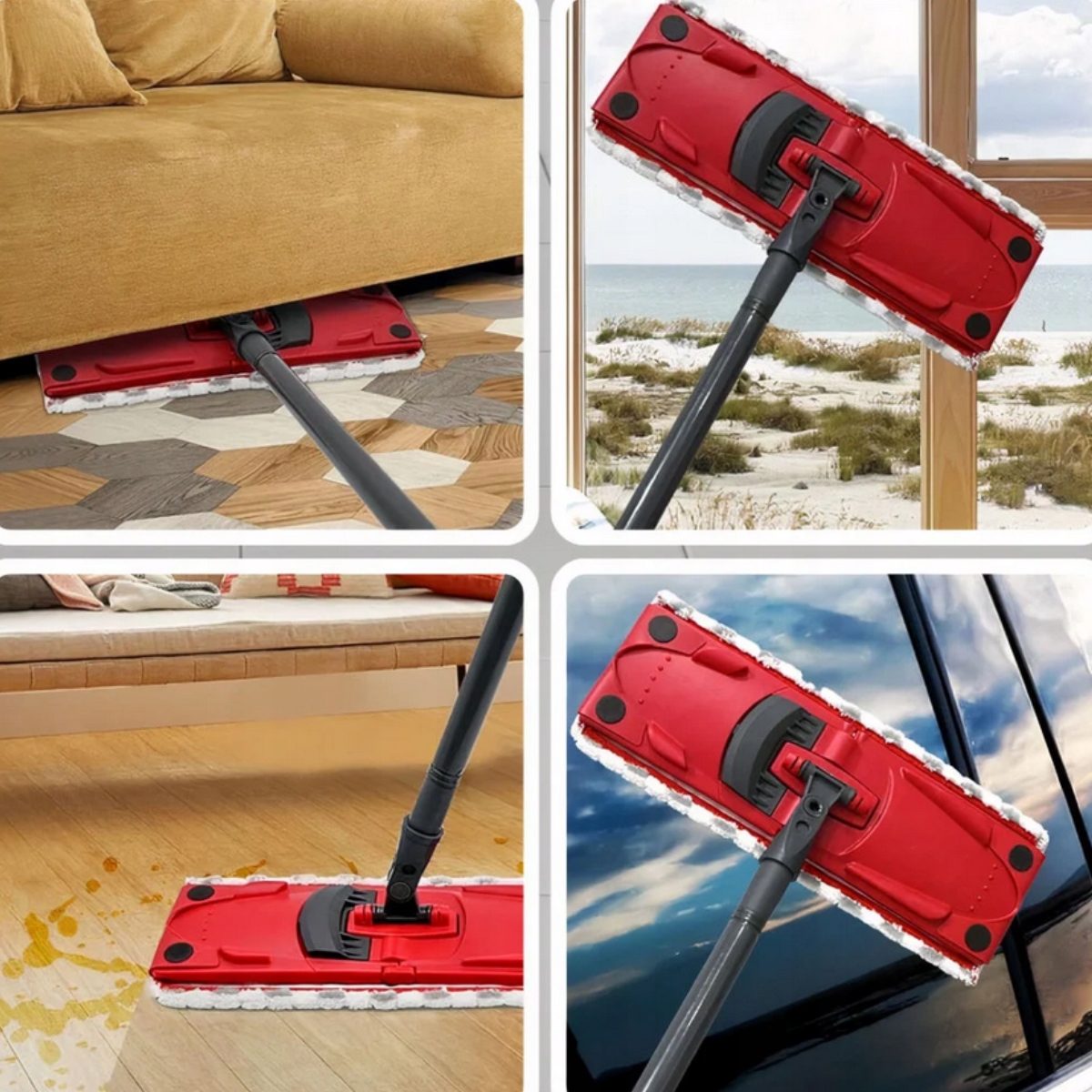 - Безопасно для поверхностей - бережно относится к панелям, паркету и плитке, не царапает и не повреждает пол.