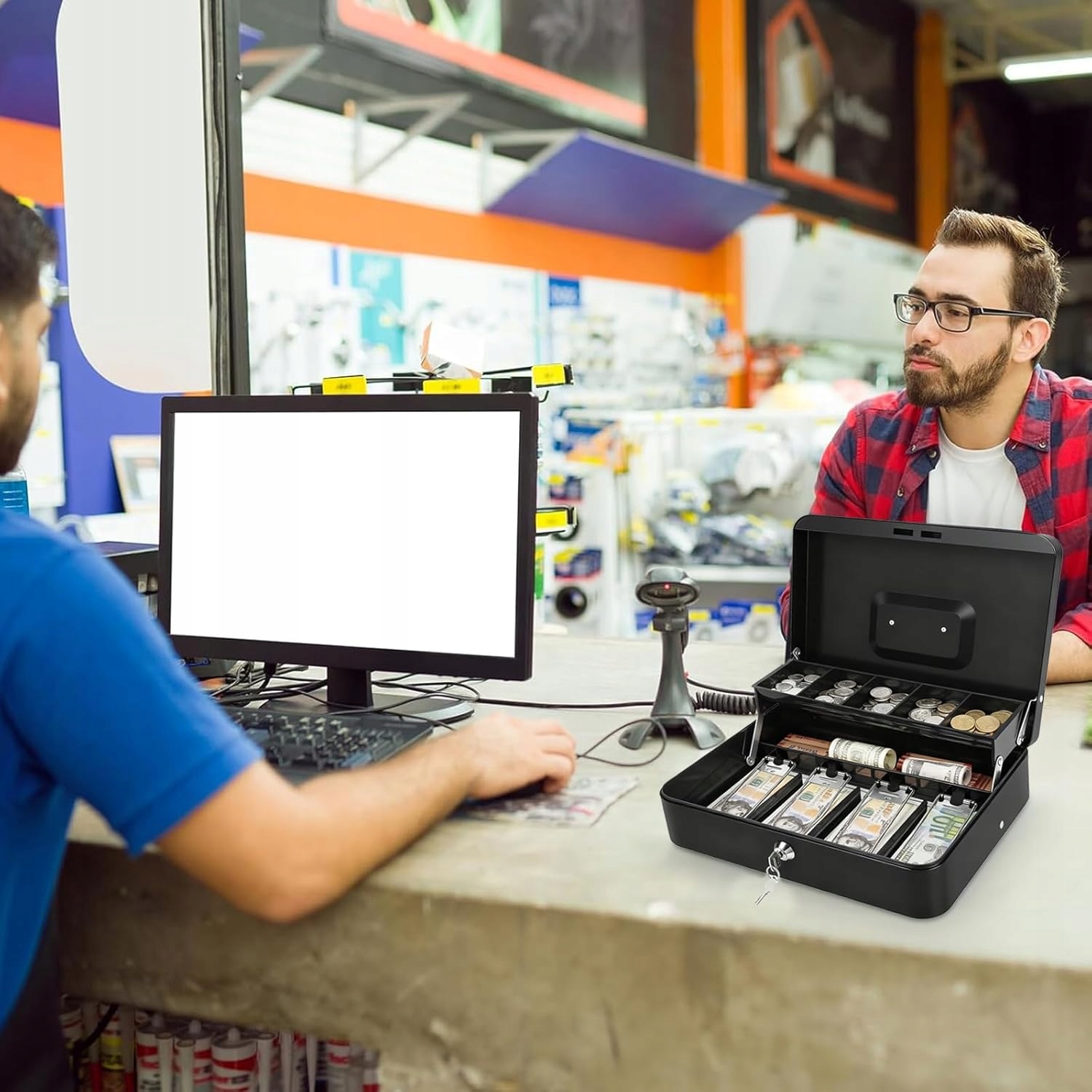 Металлический ящик для денег, купюр и монет. Вместительный ящик