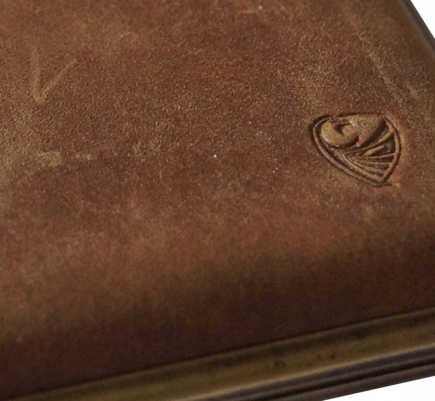 Качественные характеристики: Рамка отделана старой латунью. Этот специальный сплав технически сложен. Кожа поглощает царапины и истирание и приобретает уникальную патину. Этот образ является экспрессивным и явно желательным.
