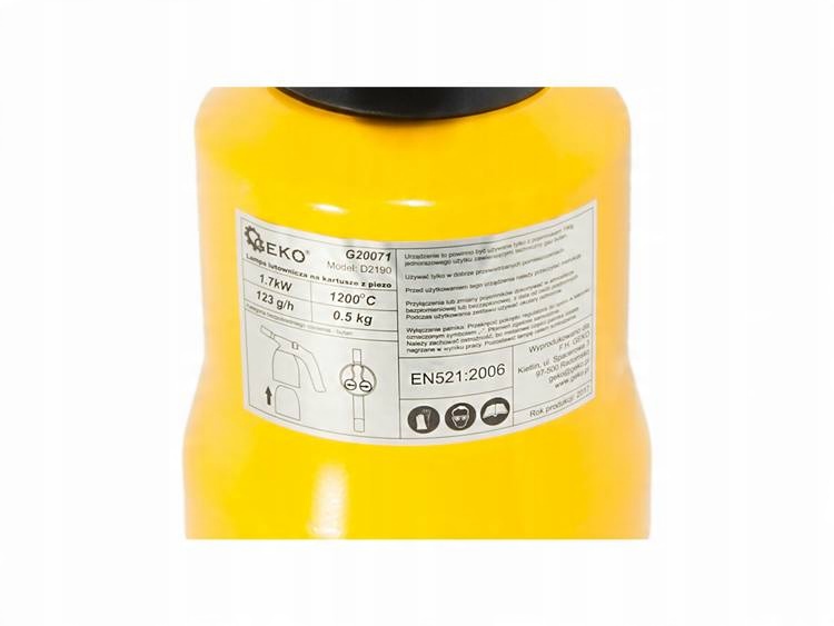 Предмет аукциона — патронная паяльная лампа торговой марки Geko, предназначенная для пайки, сварки, нагрева и разморозки. Лампа работает на газе пропан-бутан в картриджах по 190 г. Благодаря небольшому размеру и весу это очень удобное и легкое устройство. Идеально подходит для любых строительных, сантехнических и бытовых работ.