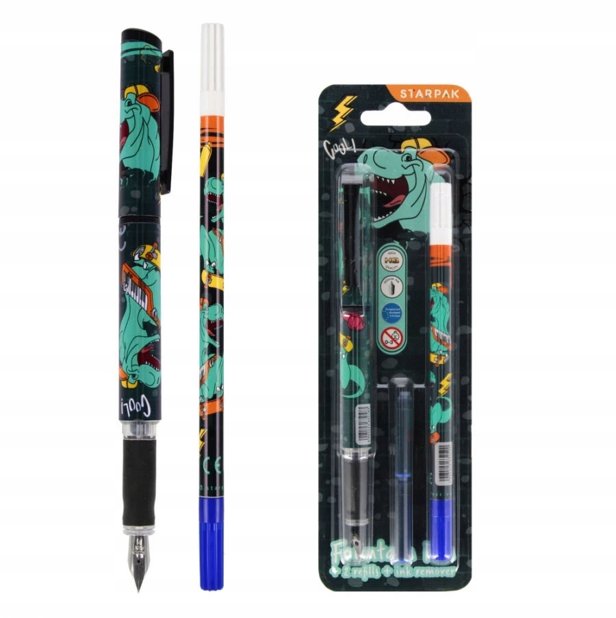 Перьевая ручка Starpak + 2 картриджа + ластик Skate Dino 536383