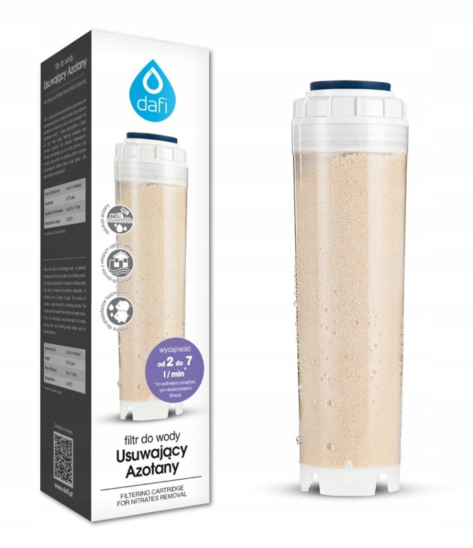 Оплачивая «Картридж проточного фильтра DAFI ДЛЯ УДАЛЕНИЯ НИТРАТОВ», вы можете быть уверены, что данный товар из каталога «Фильтры и умягчители воды» будет доставлен из Польши и проверен на целостность. В цене товара, указанной на сайте, учтена доставка из Польши. Внимание!!! Товары для Евросоюза, согласно законодательству стран Евросоюза, могут отличаться упаковкой или наполнением.