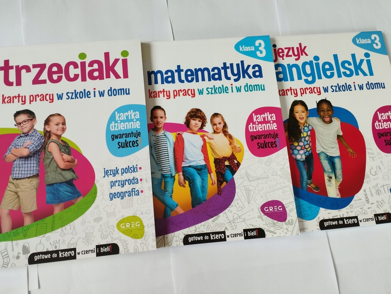 KARTY PRACY kl. 3 TRZECIAKI Matematyka Angielski GREG Nowość x3