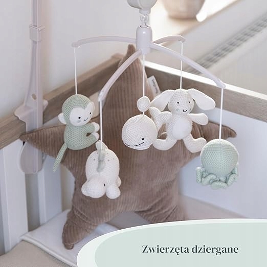 Знаменитые мягкие игрушки, подвешенные в мини-версии, мягко вращаются, привлекая взгляд ребенка и поддерживая развитие зрительного восприятия.