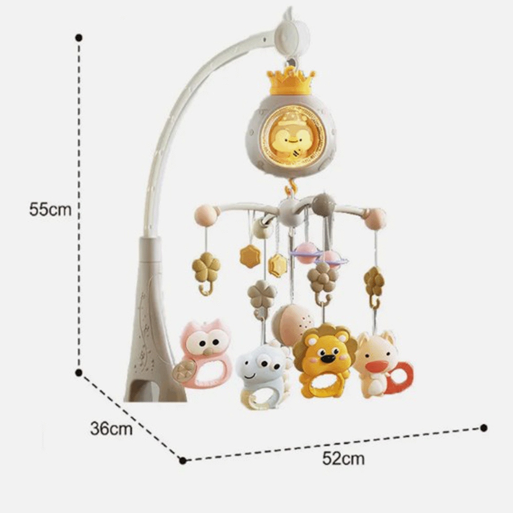 Карусель вращается на 360 градусов, мягко стимулируя зрение и наблюдательность ребенка.