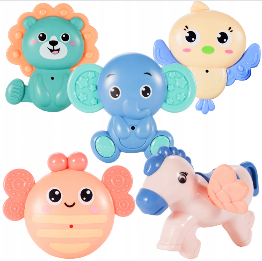 Все погремушки в форме животных имеют внутри шарики, которые приятно трясутся при встряхивании. Погремушка в виде лошади/пегаса имеет резиновые крылышки, благодаря чему ее можно использовать как прорезыватель после отсоединения от карусели.
