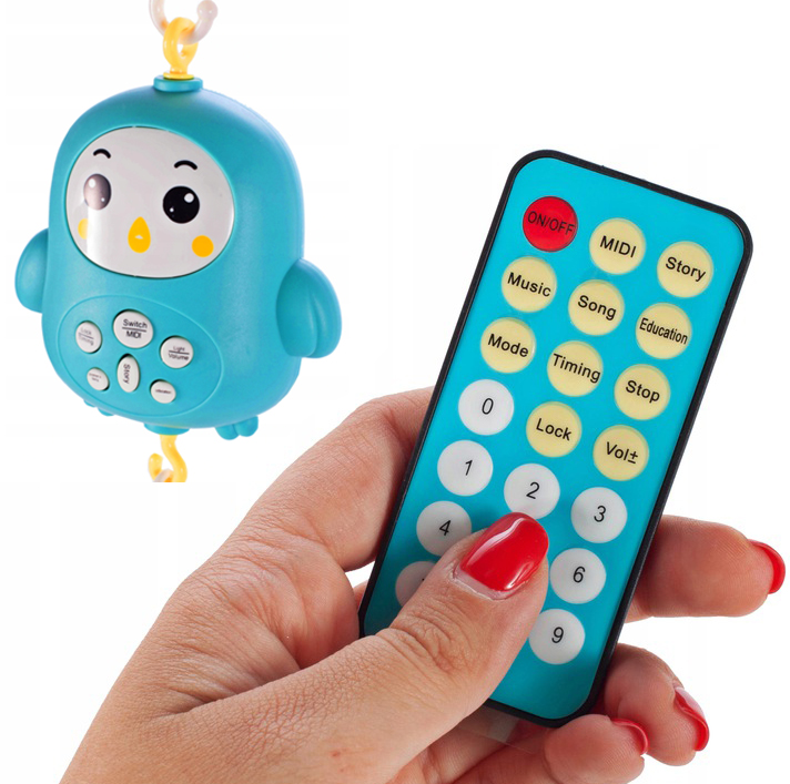 В комплекте с каруселью также идет пульт, благодаря которому мы сможем управлять каруселью на расстоянии! Когда наш ребенок засыпает, мы можем выключить игрушку с помощью пульта дистанционного управления. Не разбудив нашего малыша.