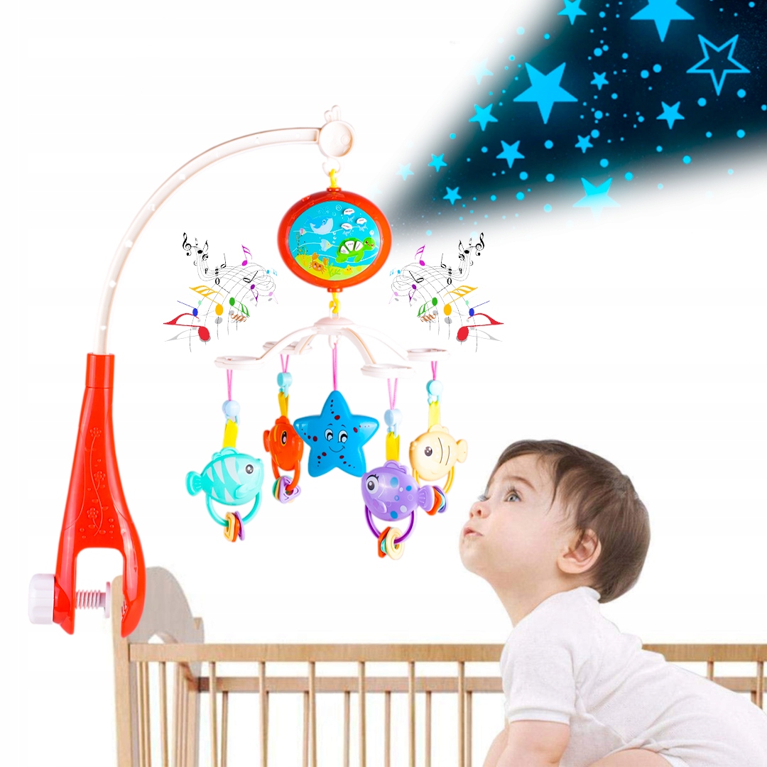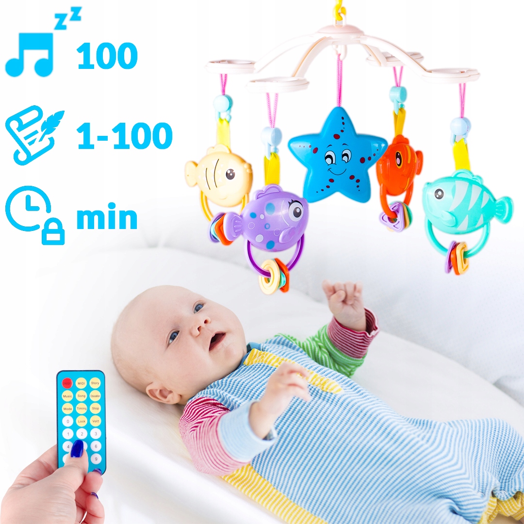 Музыкальная карусель, музыкальная шкатулка для кроватки, управляемая с пульта. Наш мобиль вращается на 360° и имеет множество звуков, мелодий и световых эффектов - проектор.