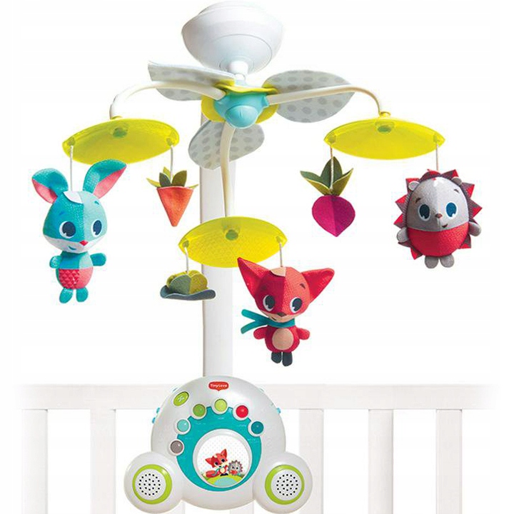 - Карусель Tiny Love благодаря сочетанию музыки и движения стимулирует чувства вашего ребенка, а также позволит ему постепенно подготовиться ко сну, когда он спит.