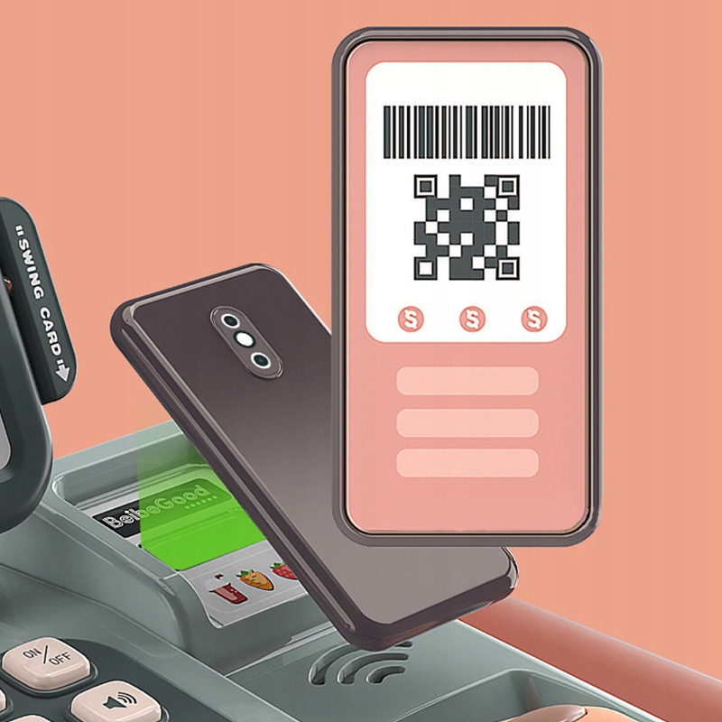 Во время игры наш маленький покупатель может платить разными способами. Это могут быть карты, банкноты и монеты, что позволяет научиться распознавать разные виды денег. Теперь появилась и возможность оплаты телефоном!