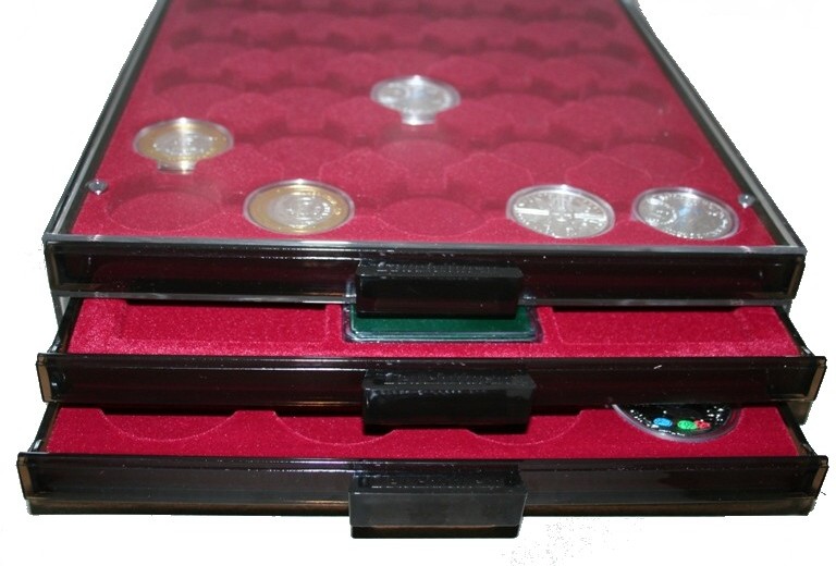 Система MB от Leuchtturm построена по принципу пластиковых кассет с выдвижными ящиками, которые можно штабелировать друг на друга. В наличии десятки моделей выдвижных ящиков, некоторые из которых постоянно продаются в нашем магазине – у нас самое большое предложение в Польше. Кассеты имеют четыре отверстия и четыре выступа, поэтому их можно ставить друг на друга, образуя устойчивые комплекты. Кассеты можно хранить отдельно или в специальных футлярах по 5 или 10 кассет. Алюминиевые, деревянные или кожаные футляры доступны и на других наших аукционах.