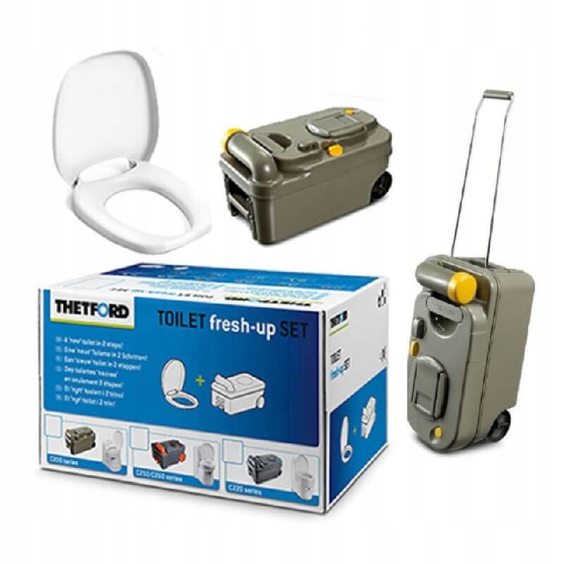 Освежающий набор Fresh-Up для унитаза Thetford C200 — идеальный продукт для людей, путешествующих в кемпере или прицепе. Это полный набор, содержащий все необходимое для обновления и ремонта старого туристического туалета.