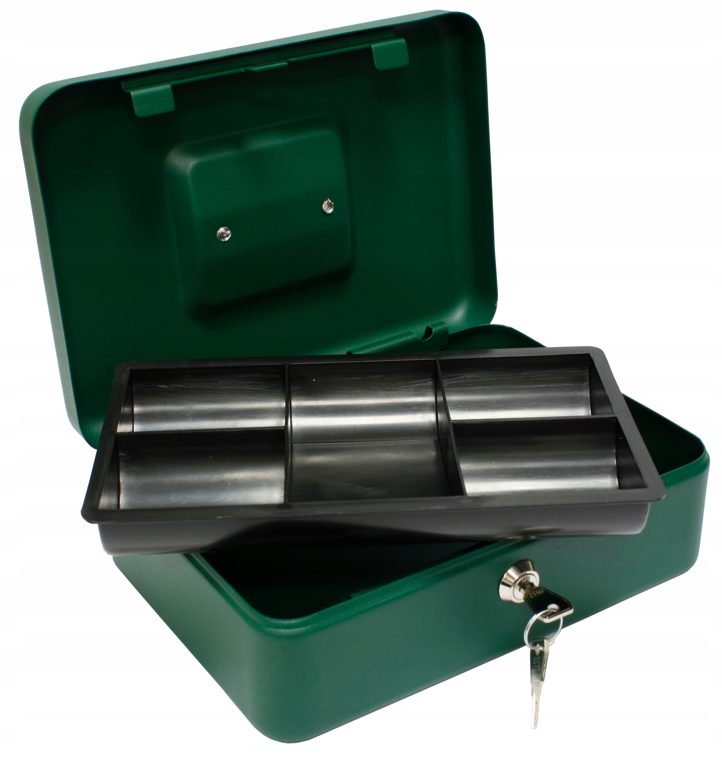 Копилка Verotech идеальна для коммерческих целей, но ее можно с успехом использовать и дома. Качественный механический замок с ключом обеспечивает сохранность денег, хранящихся в шкатулке. Закругленные края придают кассете эстетичный вид. Он был изготовлен из экструдированной стали и покрыт эпоксидным порошковым покрытием. Пластиковый съемный ящик внутри содержит специально отведенные отделения для монет различного номинала. Вы также можете спрятать внутри банкноты, купюры, документы и другие ценные предметы. Складная никелированная ручка, расположенная в верхней части корпуса, гарантирует легкую и удобную переноску.
