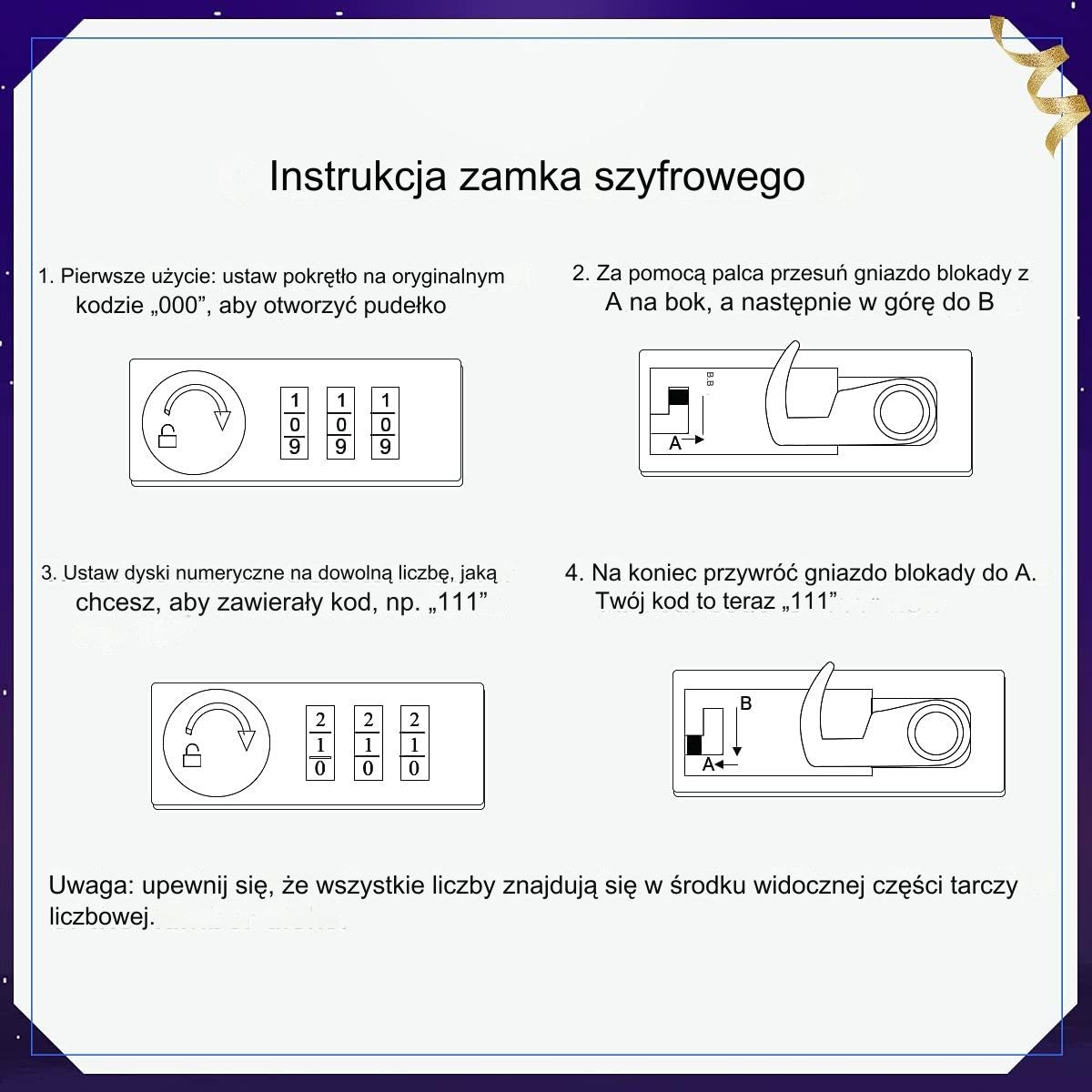 1. Первое использование: установите ручку на исходный код «000», чтобы открыть коробку