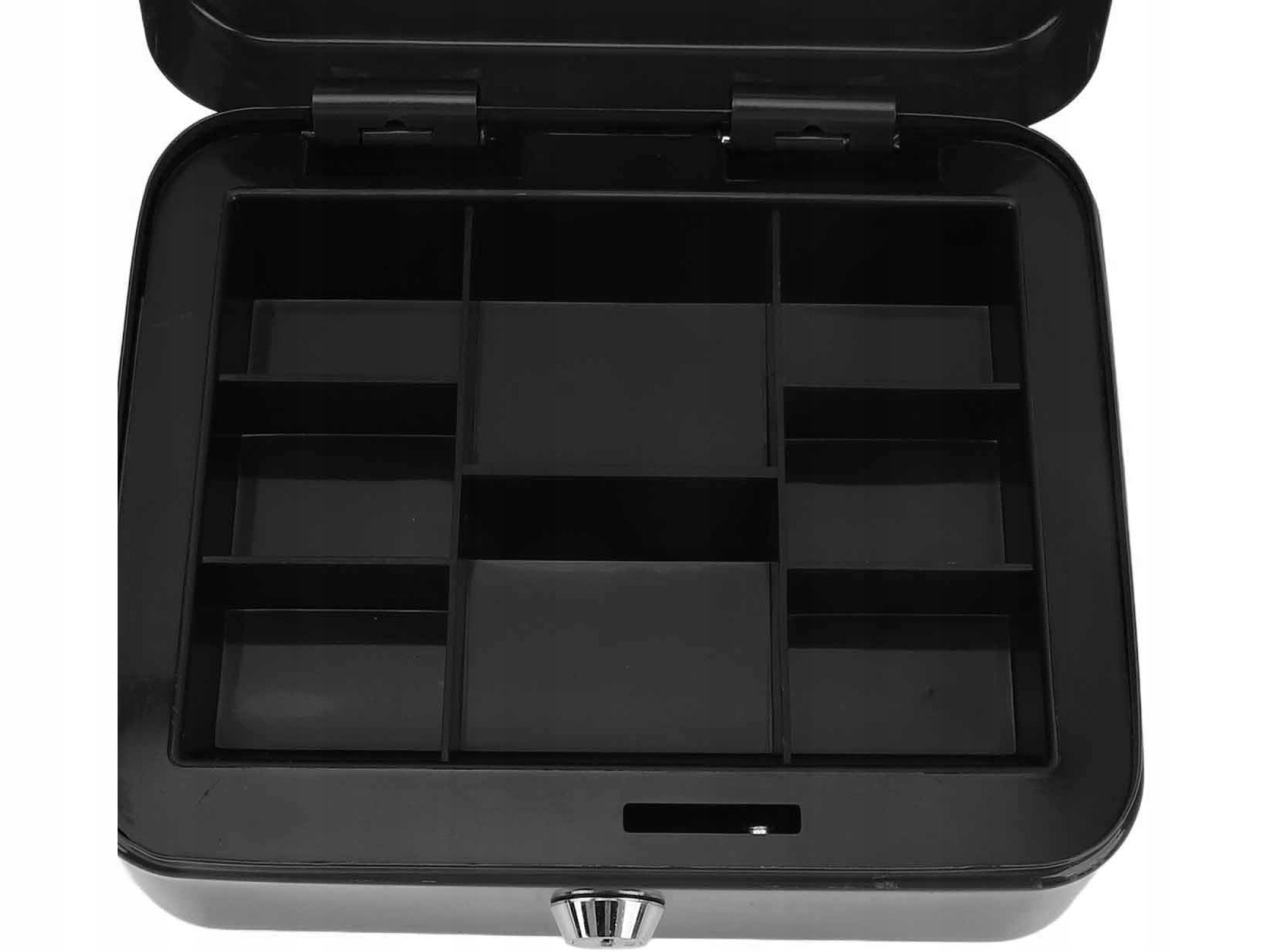 Коробка оснащена полкой с отделениями, позволяющими легко отделять монеты, купюры и другие мелкие предметы. Благодаря прочным внутренним петлям крышка открывается плавно и обеспечивает долговечность даже при частом использовании.