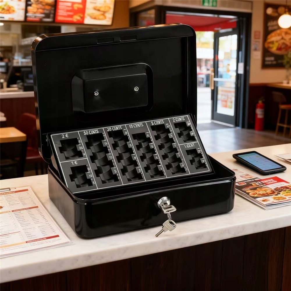 Кассовый аппарат с замком на два ключа - для хранения монет и банкнот.