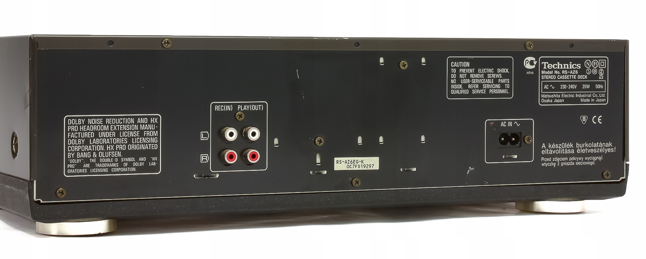 Предмет аукциона — высококлассная колода «Техника» из последней серии. Магнитола произведена в Японии, что гарантирует использование лучших электронных компонентов, надежность и безотказную работу на протяжении многих лет. После первоначального осмотра можно увидеть, что дека сделана добротно — используются массивное антивибрационное основание THCB и литая гибридная передняя пластина THDP, изготовленная из материалов высочайшего качества. В RS-AZ6 есть все, что должно быть у деки солидной компании. Обращают на себя внимание самые совершенные декодеры Dolby, которые существенно улучшают качество звука и снижают шум и звуковое «загрязнение». В стандартной комплектации Technics оснастила деку великолепно работающей и удобной ручкой REC LEVEL, электронным механизмом закрытия и открытия кармана, а также регулируемым позолоченным выходом для наушников PHONES LEVEL, что наверняка порадует любителей наушников. Так же, как использование трех головок было известно из более ранних моделей Technics, наличие аморфной головки Z-типа (AMORPHOUS Z) принадлежит последнему патенту Technics в области магнитофонов. Установка новой головки существенно улучшила параметры воспроизведения трека. Выходной усилитель, работающий в классе АА, также важен. Все это означает, что качество воспроизводимой записи аналогично качеству аудио компакт-диска. Сочетание использования лучших компонентов (например, конденсаторов серии Master) и бескомпромиссных технологий (в том числе THCB) обеспечивает поистине превосходное качество звука, которое трудно найти в эпоху пластиковых аудиоигрушек. Лучшего магнитофона на вторичном рынке за 300-350 злотых не найти. Еще в 2006 году эту новую модель можно было приобрести в некоторых аудиомагазинах примерно за 1600 злотых. Оборудование по хорошей, очень низкой цене, при этом содержится в очень хорошем состоянии. НЕ УПУСТИТЕ ВОЗМОЖНОСТЬ! УДОВЛЕТВОРЕНИЕ ГАРАНТИРОВАНО!!