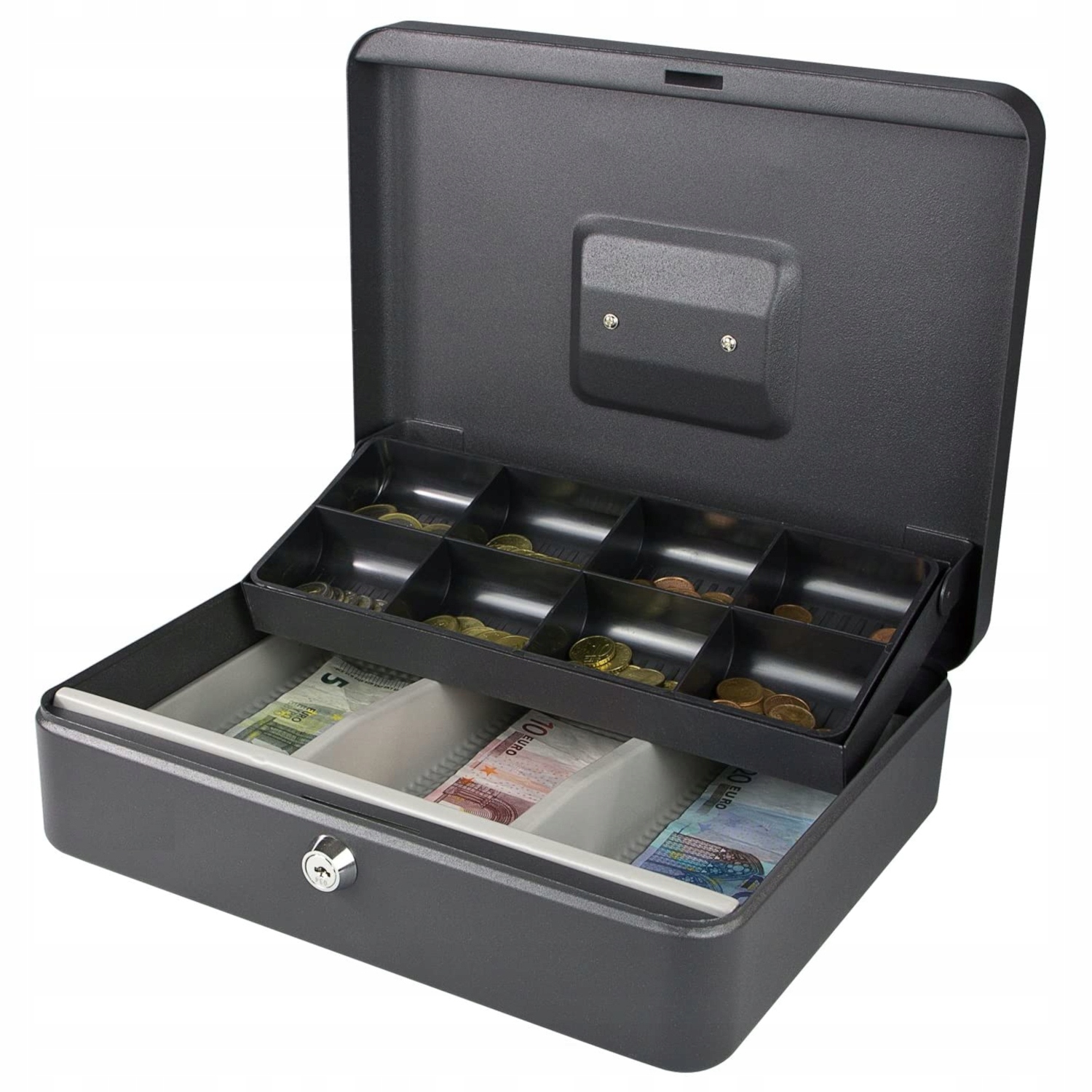 Металлический ящик СО ВСТАВКОЙ ДЛЯ МОНЕТ - 300 x 240 x 90 мм - 3 ключа в комплекте