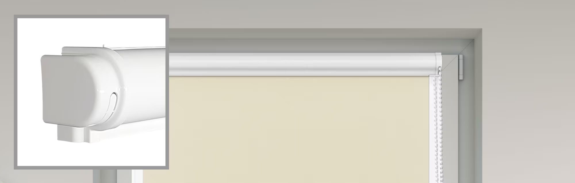 Установка проста: кассетная лента поставляется с клейкой лентой, с помощью которой можно легко прикрепить кассету к оконной раме/створке. По желанию цепочку управления можно прикрепить слева или справа.