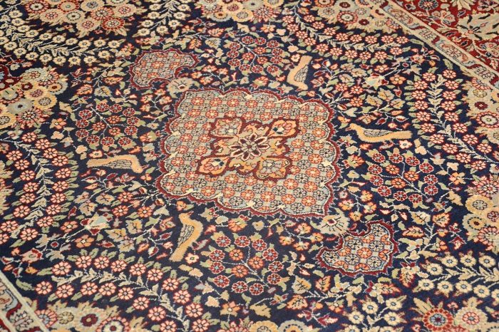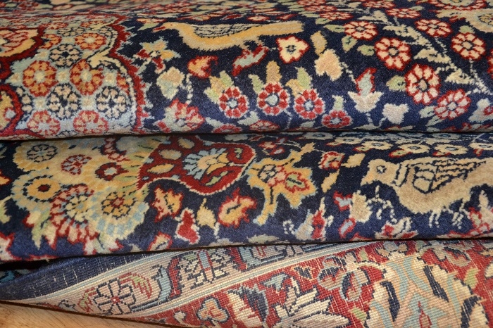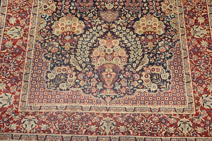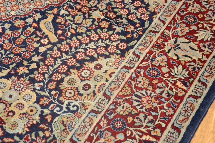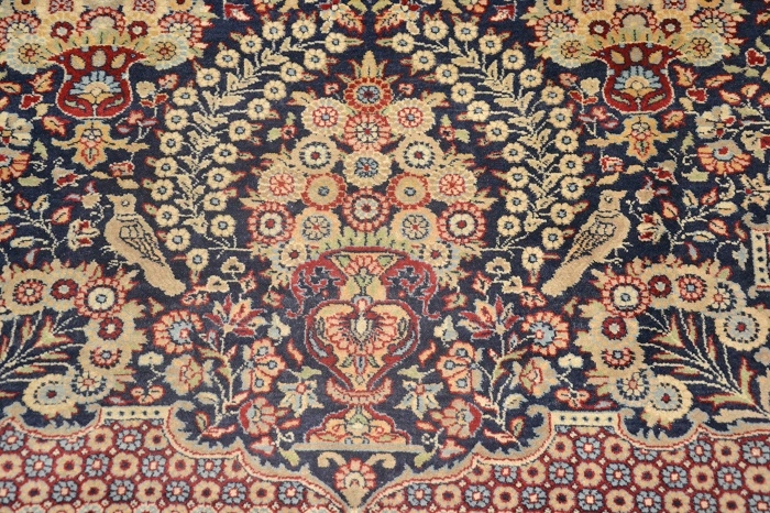 Высококлассный и исключительно красивый, оригинальный персидский ковер KASHAN - около 40 лет, соткан вручную и изготовлен из овечьей шерсти высочайшего качества, подтвержденного сертификатом качества и происхождения, с плотно скроенным блестящим ворсом. Восточный дизайн (богато украшенный цветочными композициями и фигурками птиц) и гармонично контрастирующие цвета позволяют прекрасно смотреться как на полу, так и на стене.