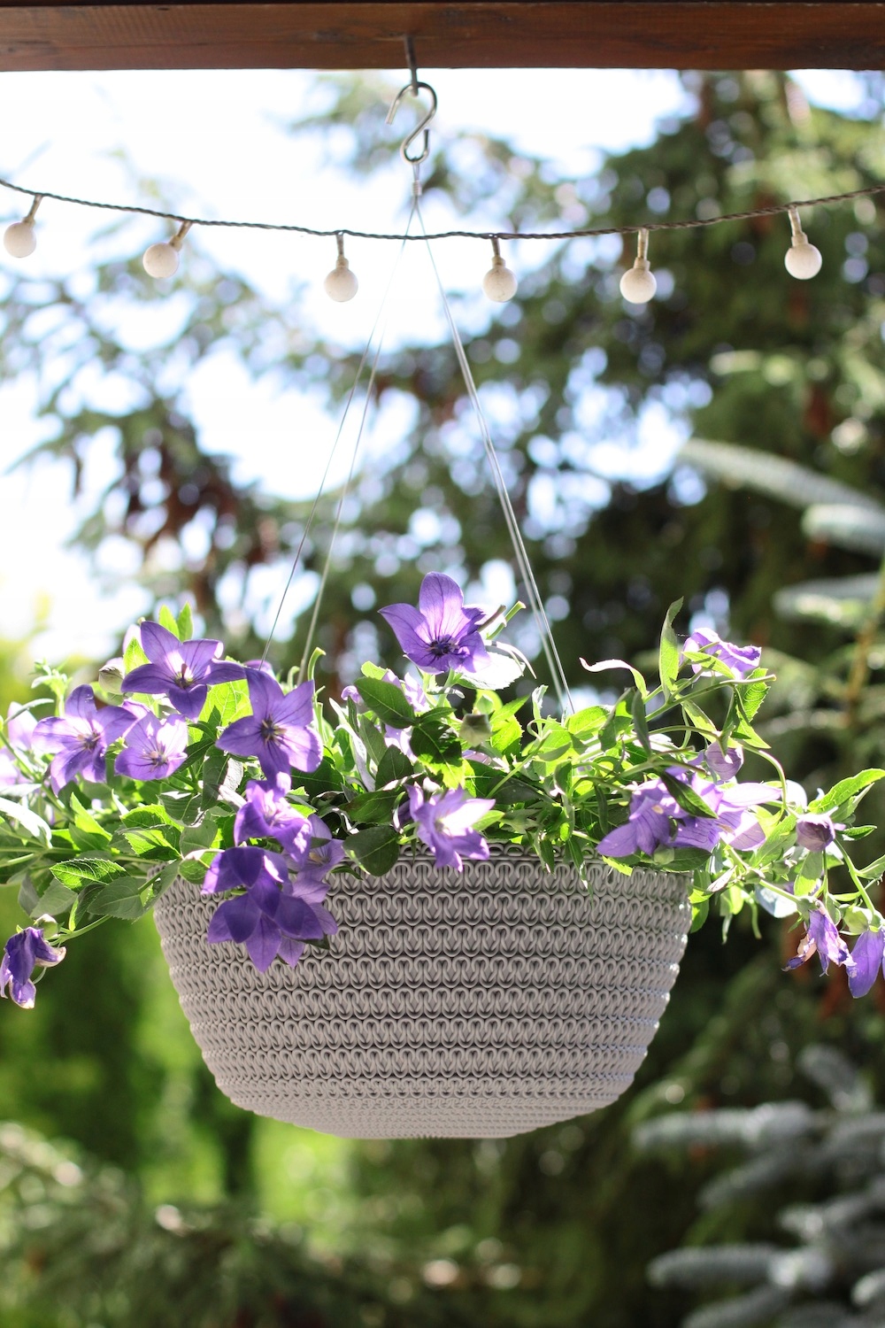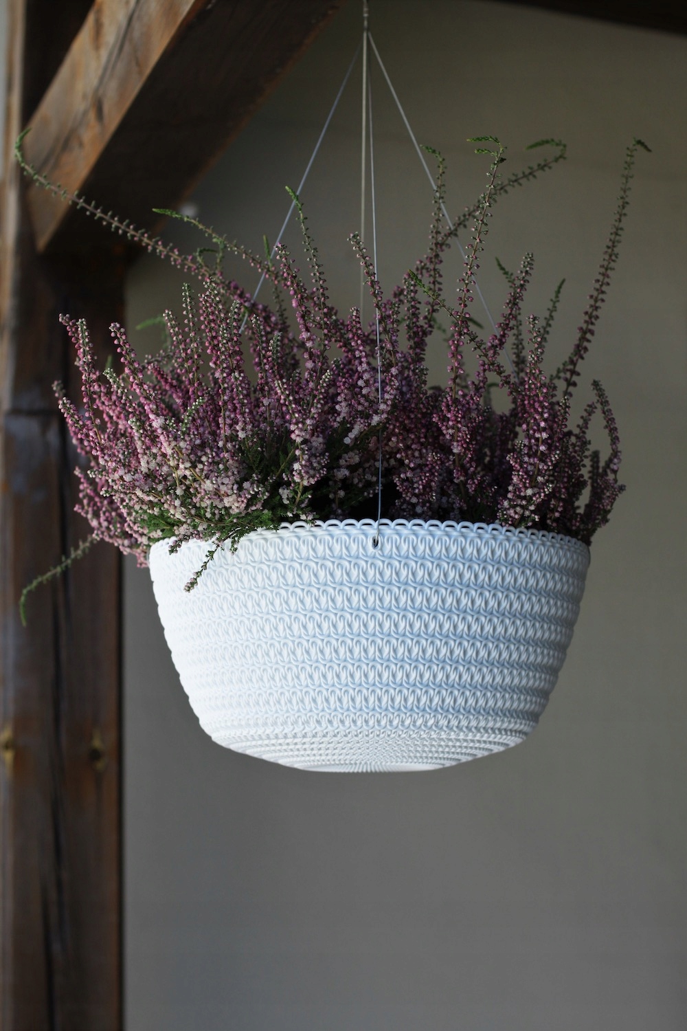 Подвесная крышка для вазона со структурой, напоминающей шерстяную тесьму. Изготовлен из прочного и устойчивого к царапинам материала.