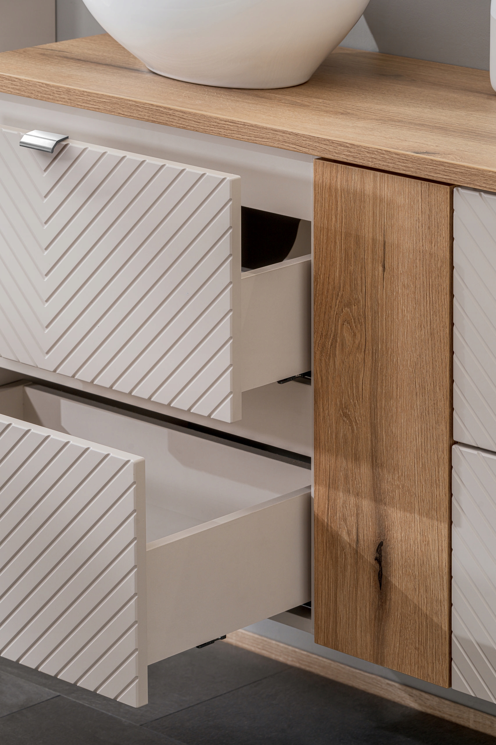 Коллекция мебели для ванной комнаты viva cashmere является сущностью гармоничного, минималистского дизайна , который связывает элегантность с практичностью. Вдохновленный повседневным использованием и необходимостью прочных решений, Viva представляет атмосферу мира и изысканности в ванной комнате. Вечный стиль. Три -мерные, искалеченные фронты из MDF вводят глубину и текстуру в интерьер, добавляя в него символ, и три разных цвета ручек в наборе с каждым шкафом позволяют мебель быть адаптированным к отдельным эстетическим предпочтениям. Эргономическая глубина шкафов под раковиной 40 см обеспечивает удобство использования , а тихие закрывающие двери и ящики /p>
