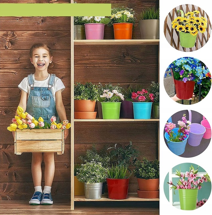 ЦВЕТНЫЕ ПОДВЕСНЫЕ ЦВЕТОЧНЫЕ ЦВЕТКИ ДЛЯ БАЛКОНА, МЕТАЛЛ, 10 шт.
