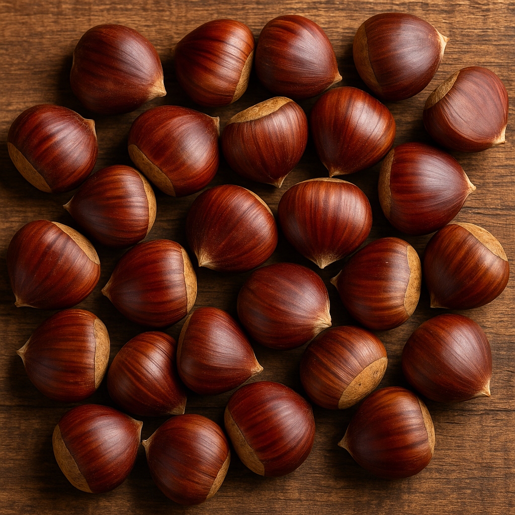 Каштаны – свежие, натуральные, прямо из Южной Европы. Они имеют сладкий, слегка ореховый вкус и мягкую консистенцию после выпечки. Идеально подходит для холодных осенних дней – для выпечки, кулинарии и десертов.