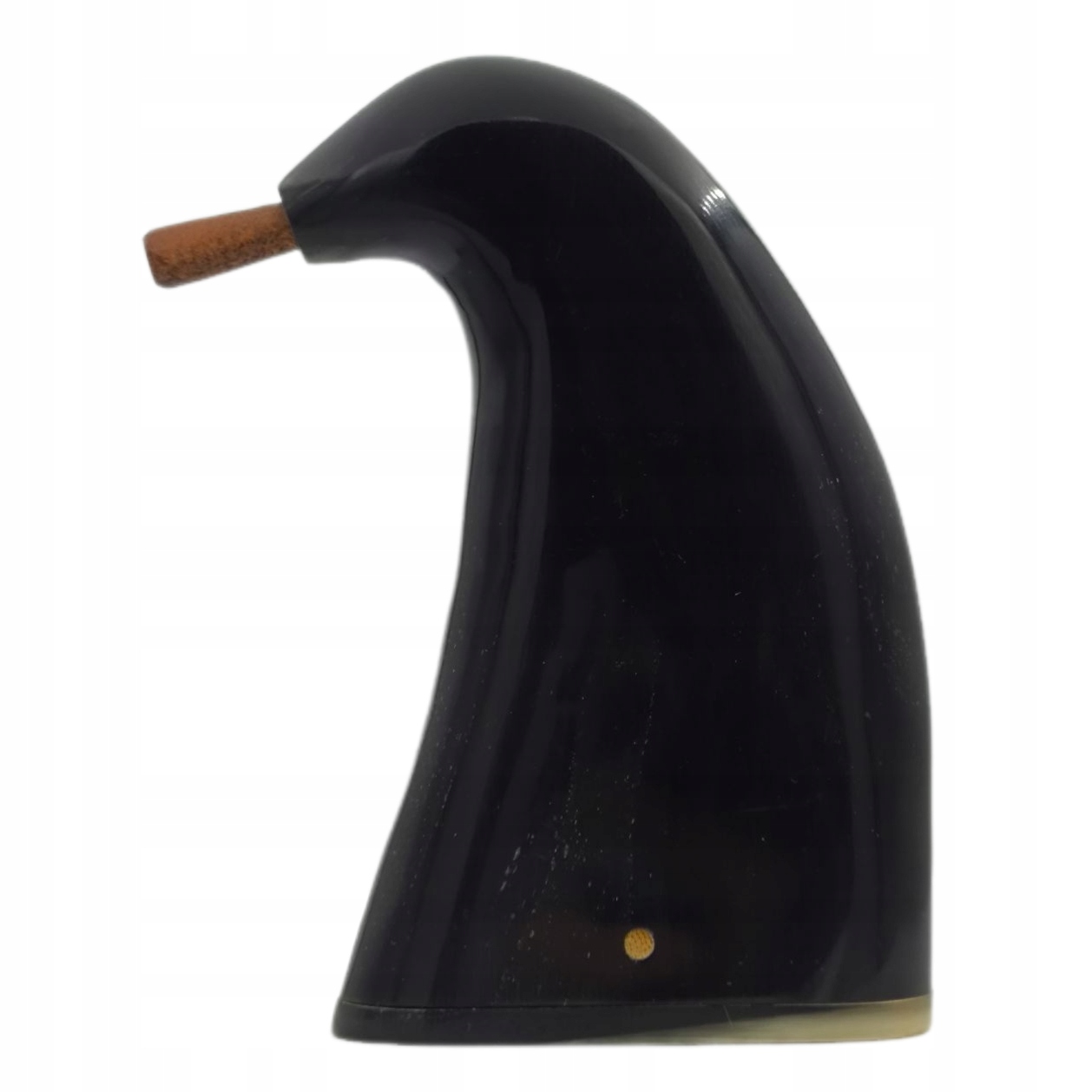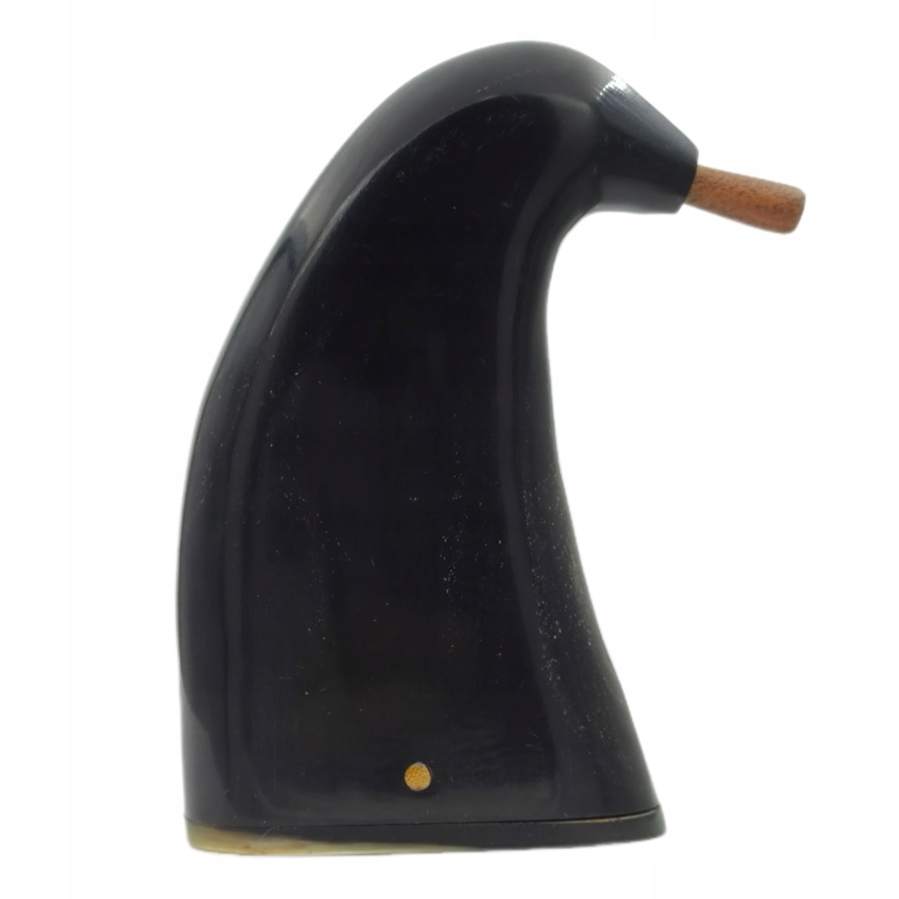 Дно табакерки также было изготовлено из рога. Чтобы открыть его, вытолкните деревянную заглушку, расположенную сбоку. В верхней части табакерки имеется кожаный колпачок.
