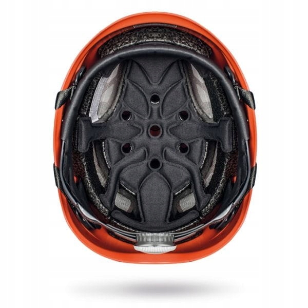 ✔️4-точечный, регулируемый подбородочный ремень из эко-кожи повышает комфорт использования. Ремешок гипоаллергенен и его можно стирать для поддержания гигиены. Цвет пряжки позволяет идентифицировать стандарт (оранжевый - EN 397, салатовый - EN 12492).