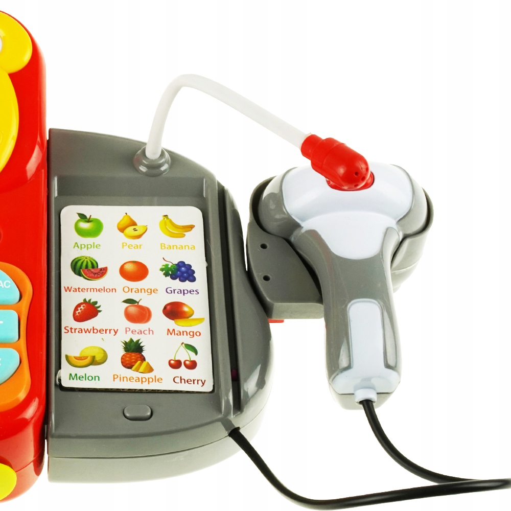 Кассовый аппарат имеет встроенный калькулятор, а также < б> ящик для денег. Рядом с лентой находится устройство для чтения кредитных карт. Передав карточку, ребенок услышит характерный звук. Кассовый аппарат также оснащен микрофоном - как в реальном магазине. С левой стороны мы найдем весы, благодаря которым кассир будет с должным вниманием обслуживать всех покупателей.Дети любят ролевые игры, поэтому этот набор является идеальным решением для каждого ребенка, который будет стимулировать его воображение и почувствовать себя реальный продавец.
