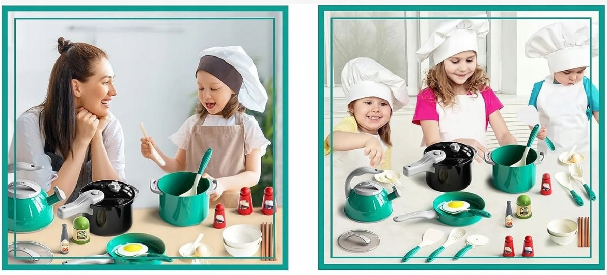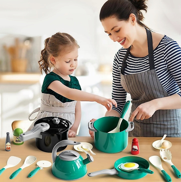 Творчество:Дети могут использовать посуду и кастрюли, чтобы создавать свои собственные сцены, изображать приготовление пищи или рестораны, что развивает их воображение и творческие способности.