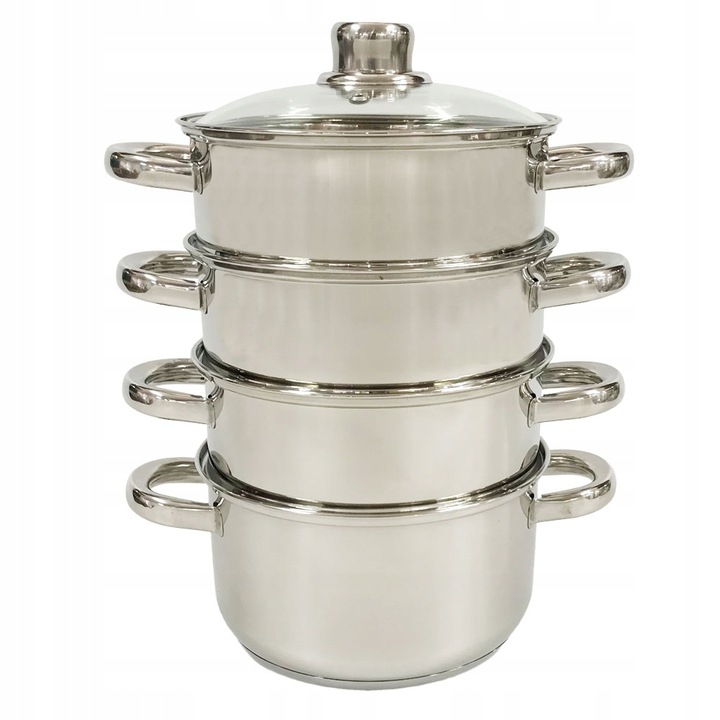 Набор можно использовать с одной пароваркой , штабелируется со всеми пароварками, а можно использовать саму кастрюлю для приготовления других блюд (она толще и массивнее насадок, ее можно использовать отдельно). Стеклянная крышка подходит ко всем элементам набора.