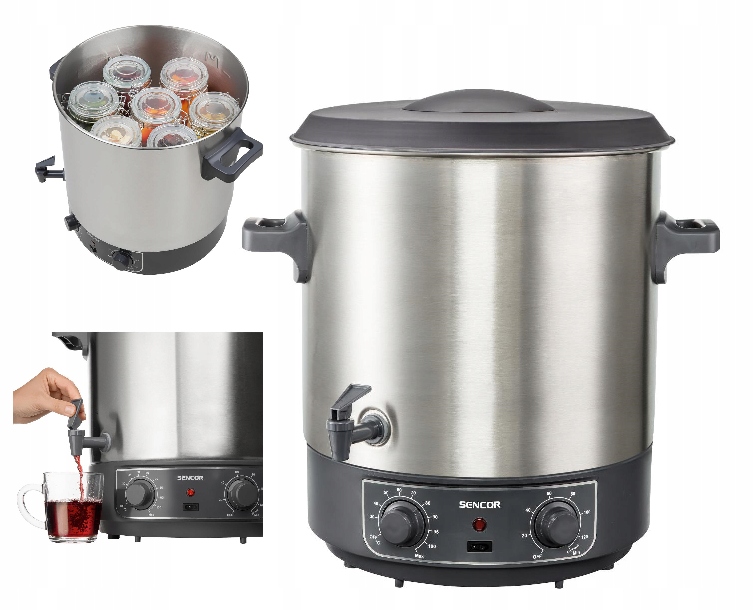 Горшок Sencor SPP 2200SS — идеальное устройство для пастеризации и стерилизации любых консервов из овощей и фруктов. Он идеально подходит для пастеризации джемов и компотов, но также подходит для тех же целей в случае соусов и супов. В нем также можно приготовить горячие напитки, например, чай или глинтвейн, а затем подать их прямо из кастрюли. Кастрюля имеет емкость до 27 литров, вы можете постепенно регулировать температуру и благодаря встроенному крану подавать горячие напитки или доливать бутылки.