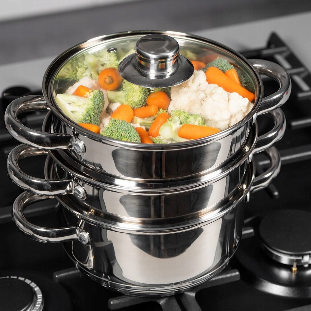 ✅ состав набора: кастрюля + 2 насадки для приготовления на пару + крышка