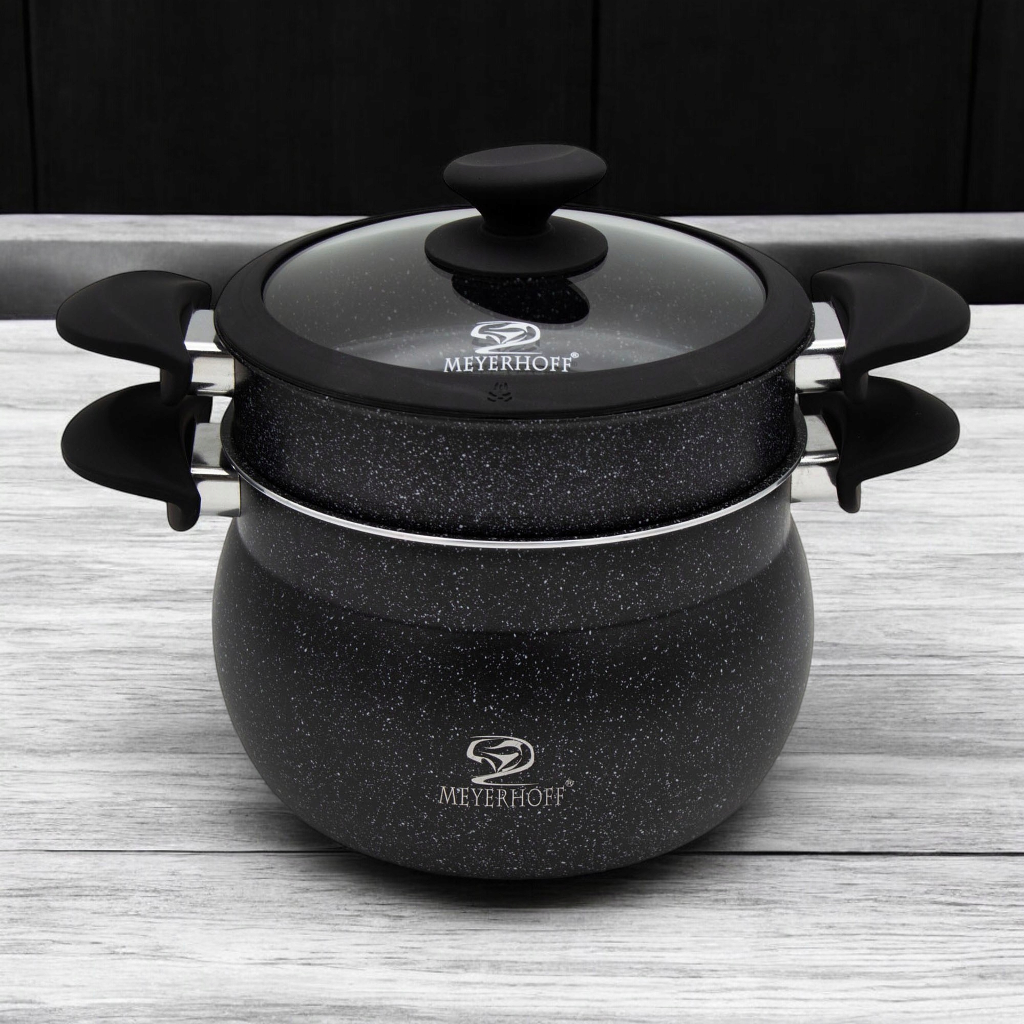Кастрюля от известного бренда Meyerhoff изготовлена из высококачественной нержавеющей стали, покрытой мраморным покрытием, АНТИПРИГАРНОЕ. Идеально подходит для повседневного приготовления диетических блюд для людей, ценящих здоровый образ жизни. В пароварке мы можем приготовить мясо или овощи так, чтобы для термической обработки не требовался жир. Благодаря этому блюда сохранят максимум витаминов и минеральных солей, а также натуральный вкус и аромат. Паровая вставка позволяет готовить несколько блюд одновременно.